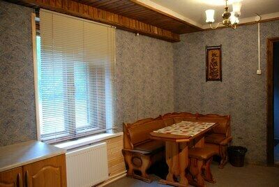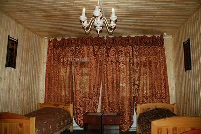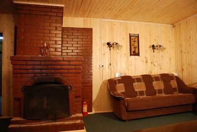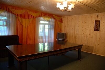 Гостевой дом имеет: кухню, столовую, большой банкетный зал с камином и караоке, сауну и 5 спален.