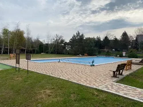 Тип бассейна: открытый бассейнРядом с бассейном: шезлонги, зонтикиПросторный плавательный бассейн под открытым небом с зоной отдыха, обустроенной тентами и лежаками.