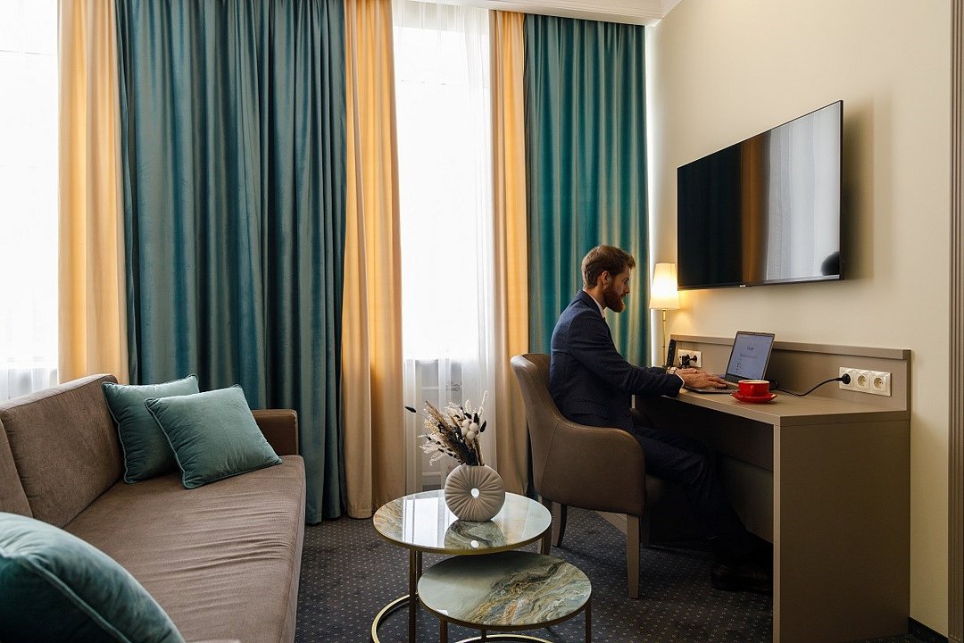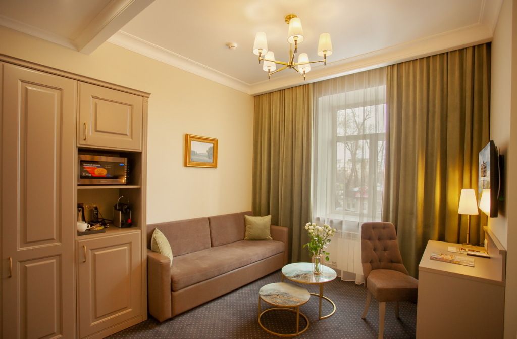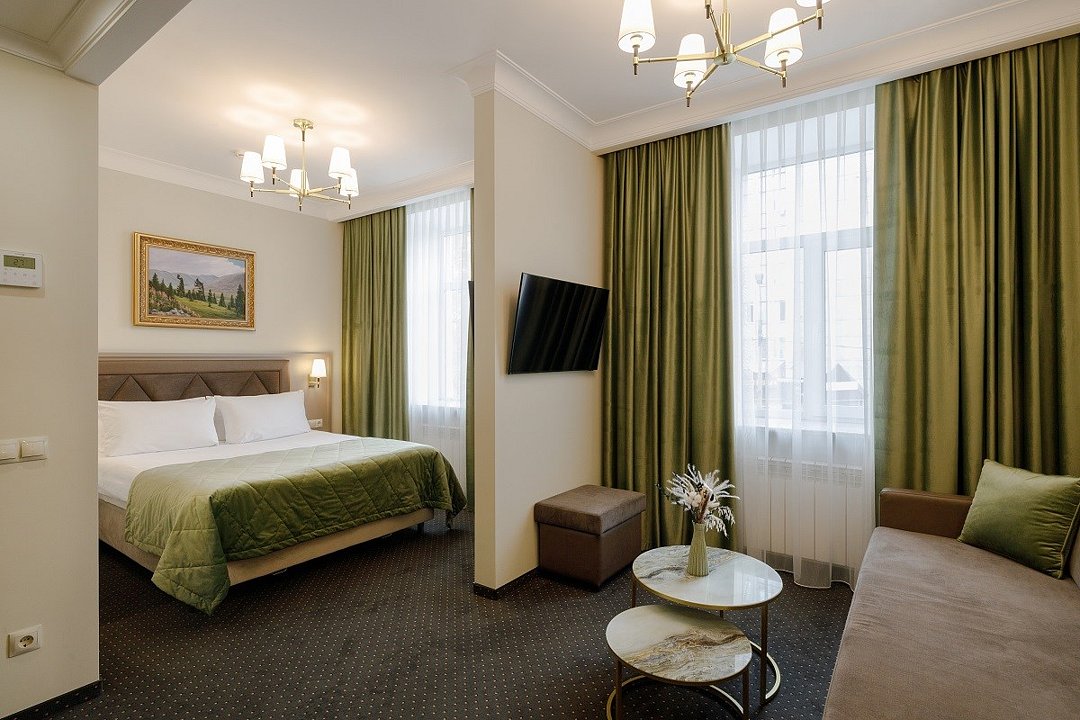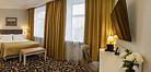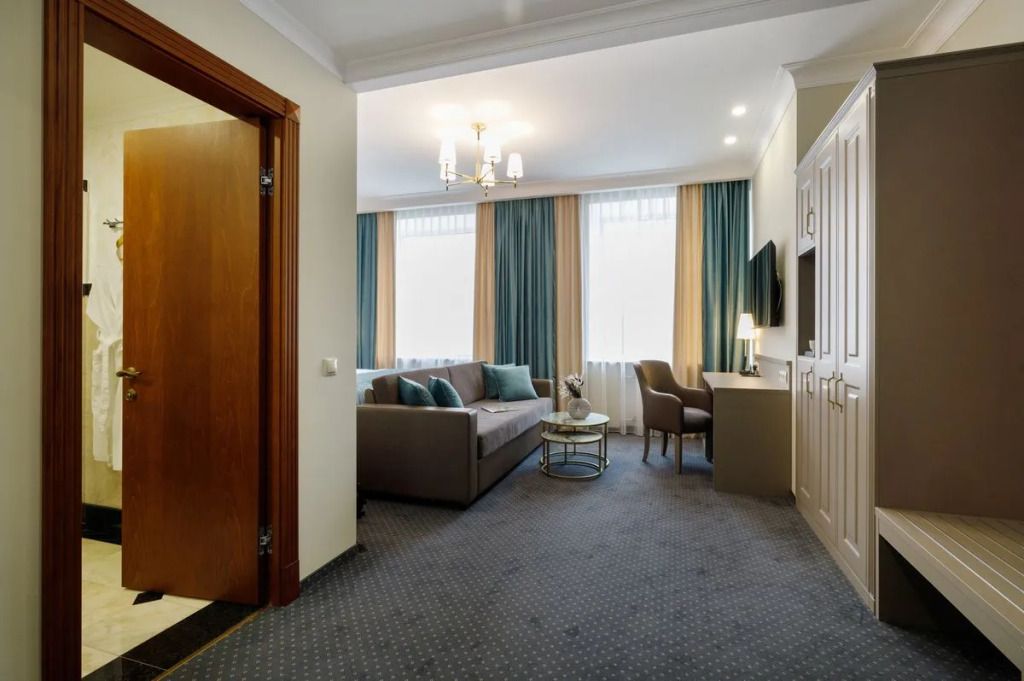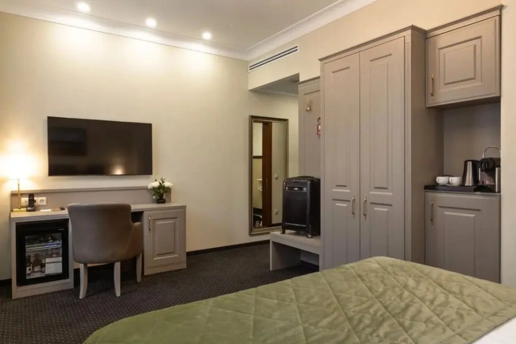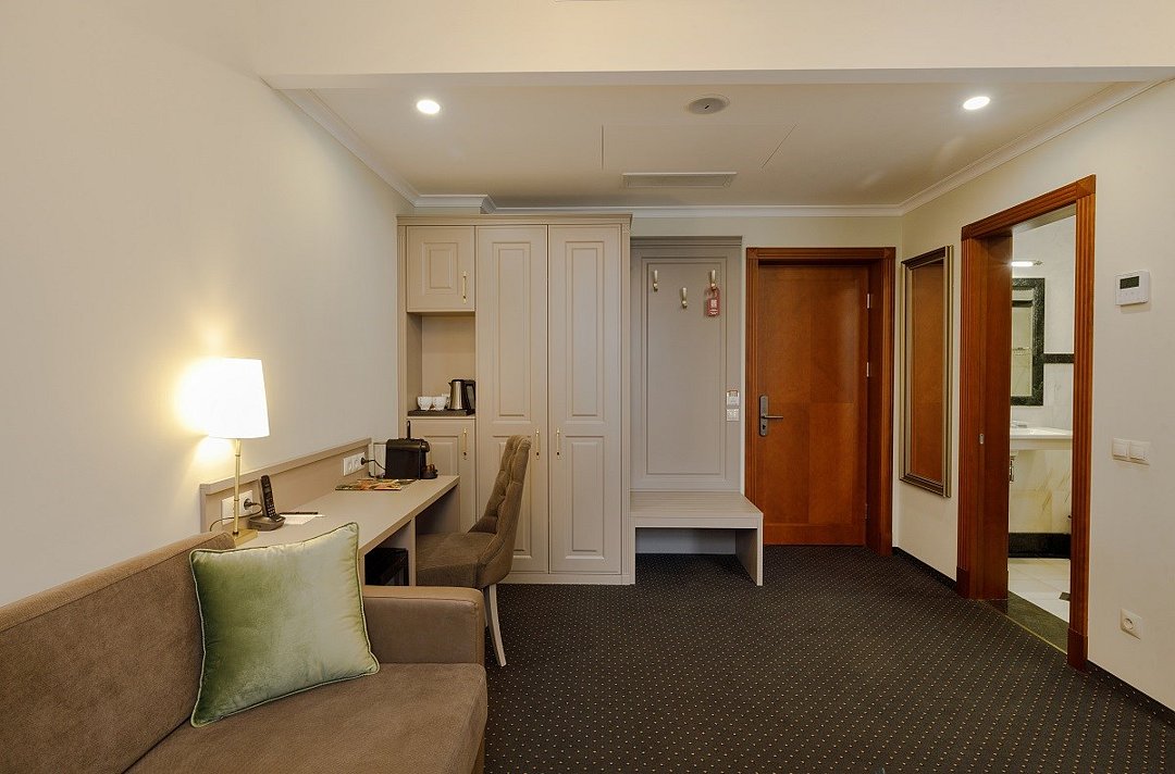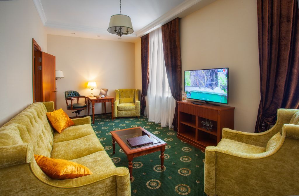 Представительский, элегантный номер после реновации. В Вашем распоряжении индивидуальная система кондиционирования, два телевизора, сейф, фен, мини-бар, чайная станция, кофемашина, гладильный центр, набор белоснежных полотенец, халат, тапочки и косметический набор.Услуги и удобства