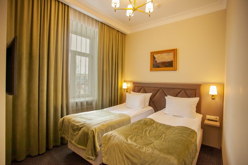 Для путешествующих вдвоем с другом, коллегой, родственником. В каждом номере две раздельные кровати, эргономичное рабочее место, бесплатный Вай - фай и ЖК ТВ, кондиционер, сейф, мини-бар, фен,халат, тапочки, душевая кабина.Услуги и удобства