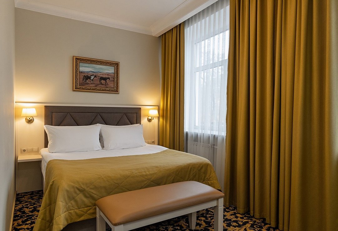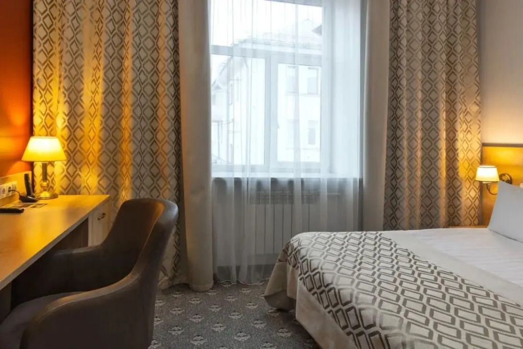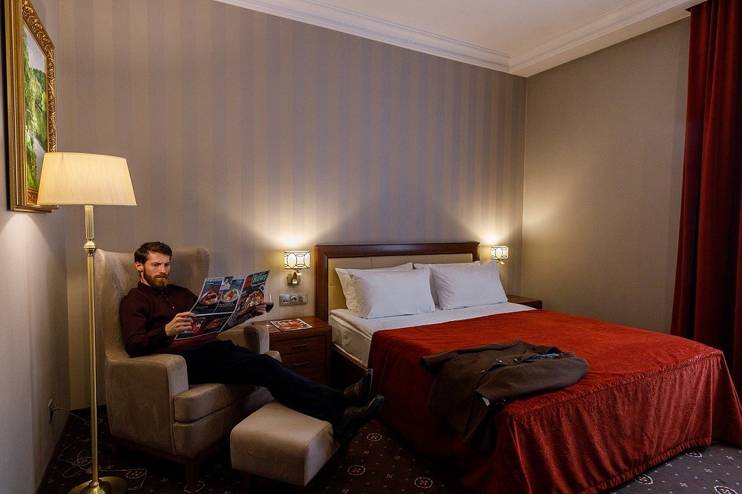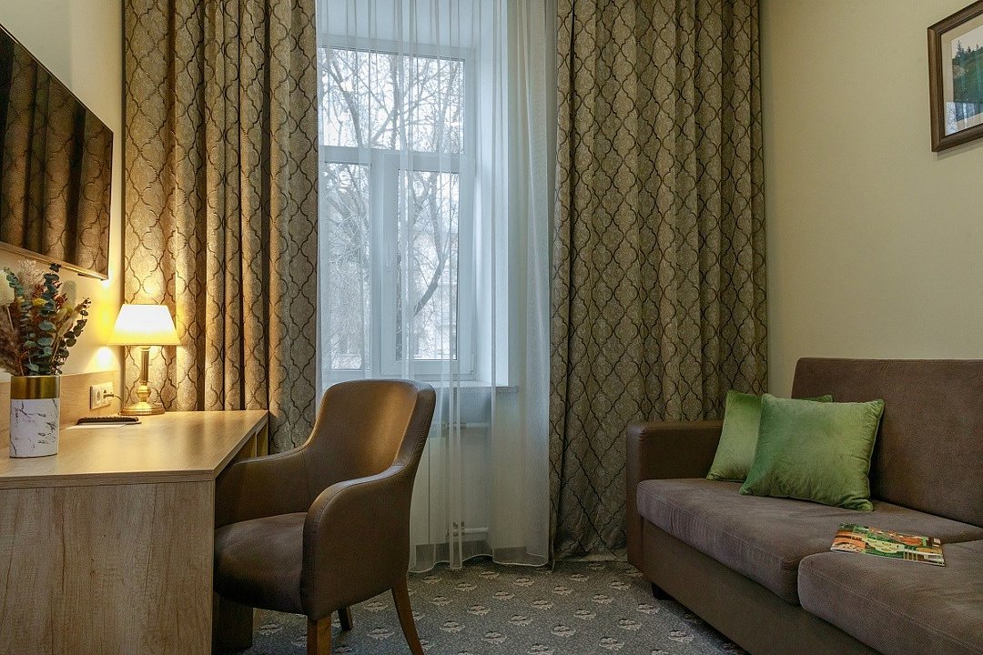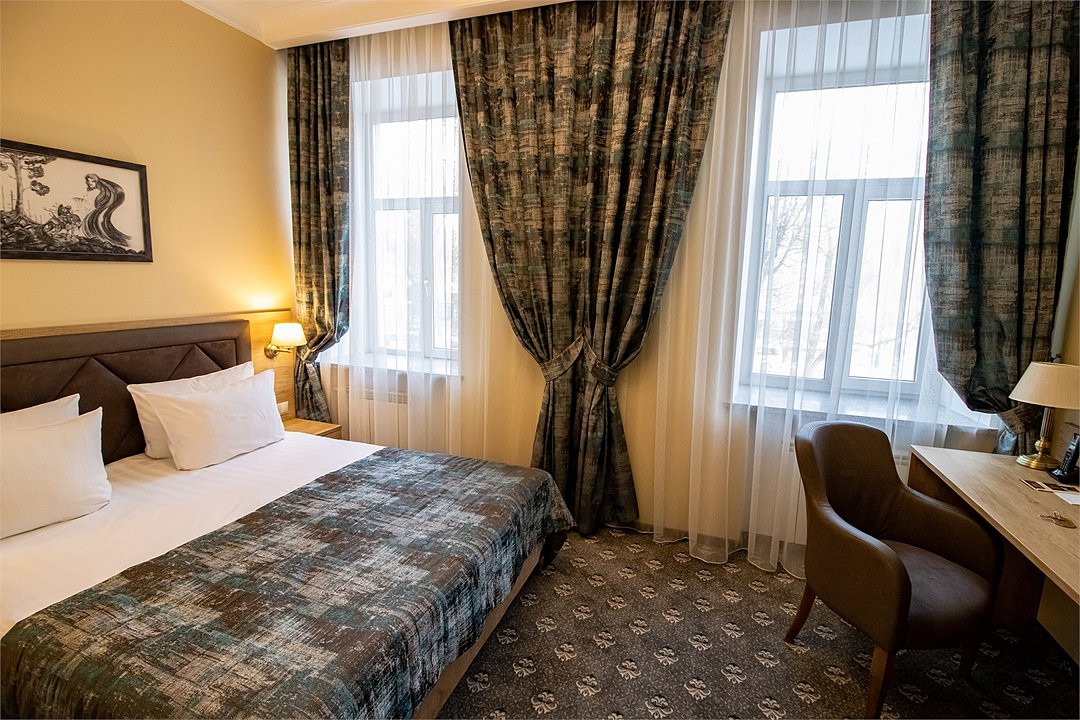 Отель находится в трехэтажном здании, выстроенном в середине прошлого столетия. Гостей ожидают номера категории Стандарт, Люкс, Джуниор, Апартаменты. Несмотря на то. что гостиница открылась более 60 лет назад, во всех комнатах — современный и стильный интерьер. Номера оснащены собственной ванной комнатой, укомплектованы необходимой техникой — в каждом есть телевизор, сплит-система, электрочайник, фен. В апартаментах оборудована небольшая мини-кухня.
