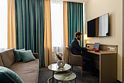 Просторный номер для работы и отдыха. В номере: комфортабельная двуспальная кровать, диван, бесплатный Вай-фай, ЖК ТВ с отличным выбором каналов , рабочий стол, сейф, кондиционер, мини-бар, кофемашина, душ, фен.Услуги и удобства