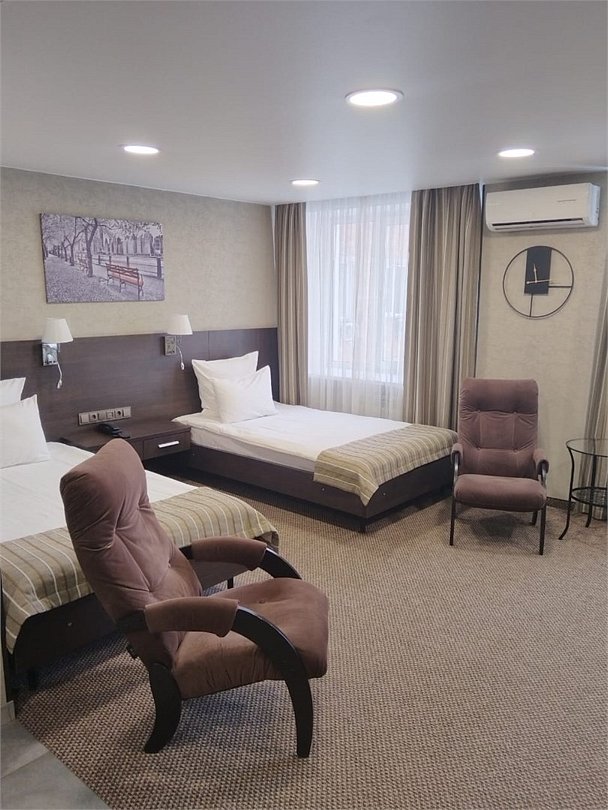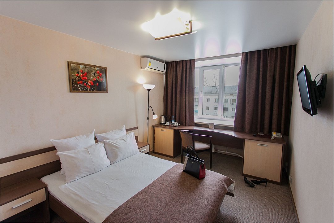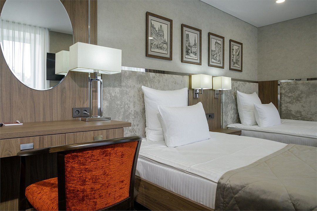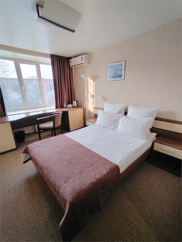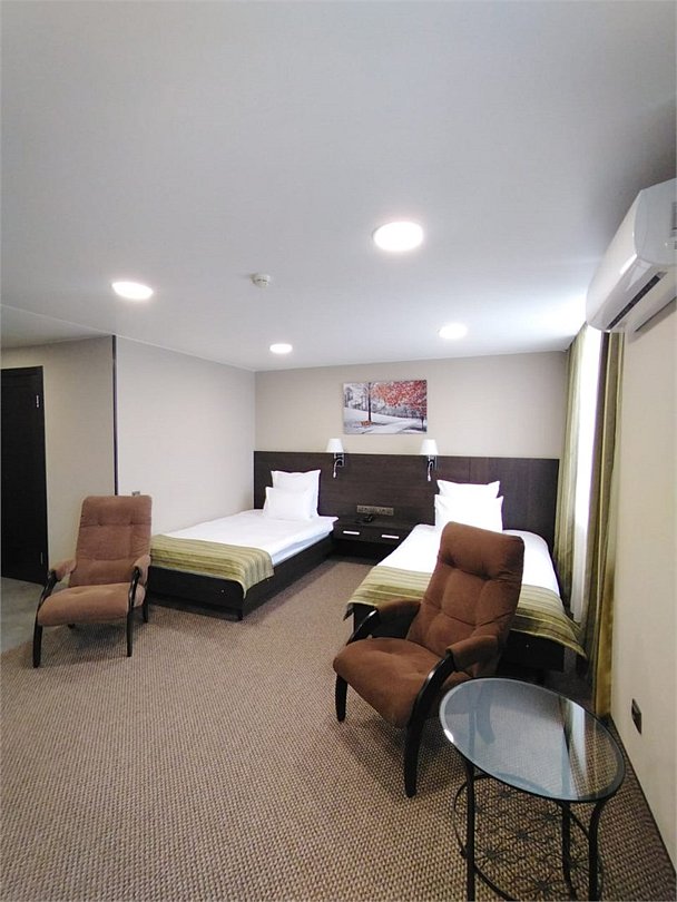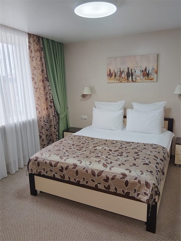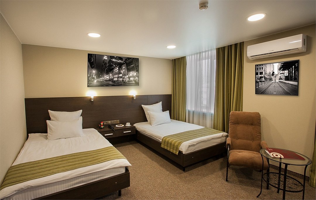 Просторный номер с современным дизайном. Прекрасный вариант для двухместного размещения во время командировки или туристической поездки. В стоимость номера включена бесплатная парковка, wi-fi, вызов такси, побудка и пр.Услуги и удобства
