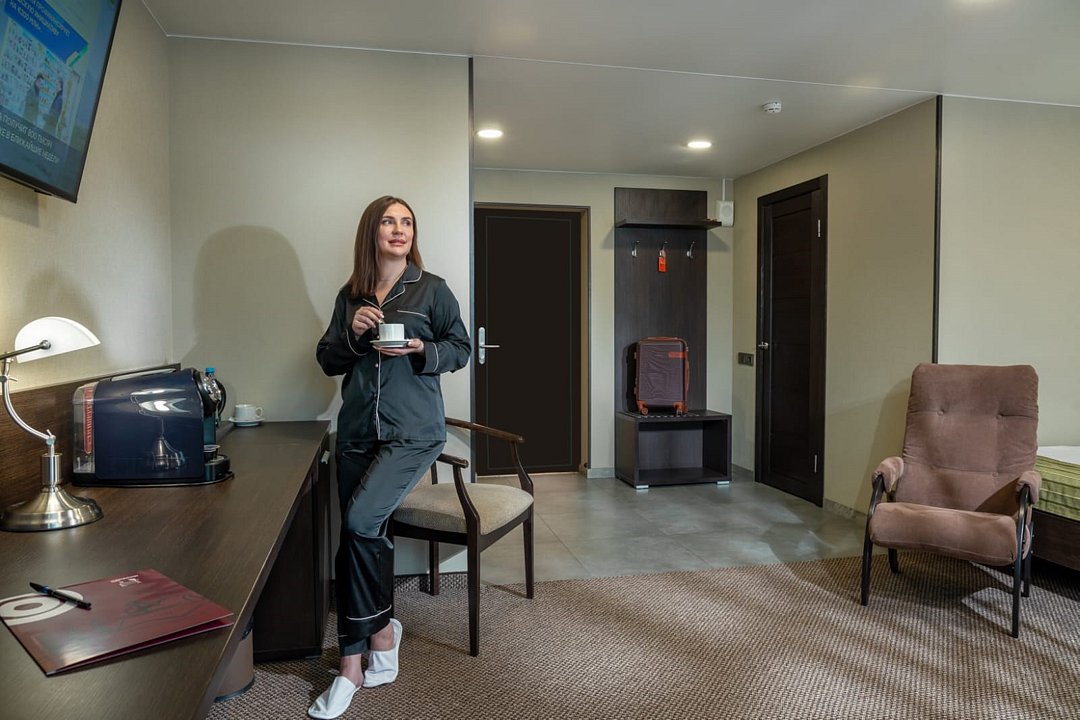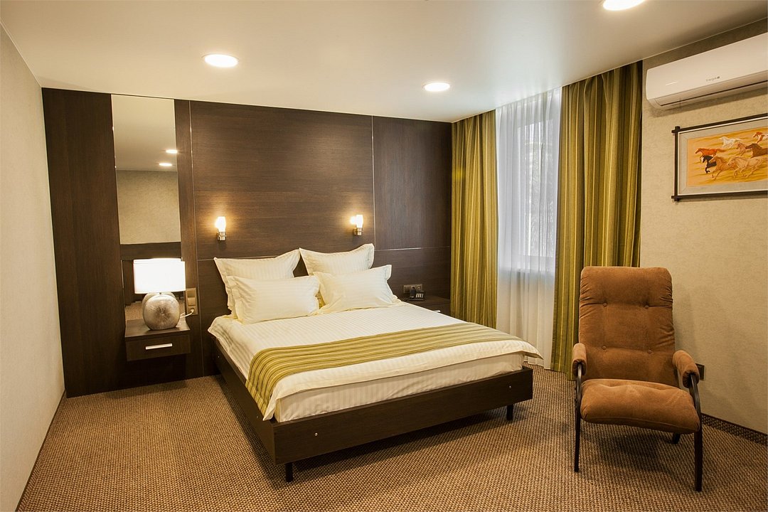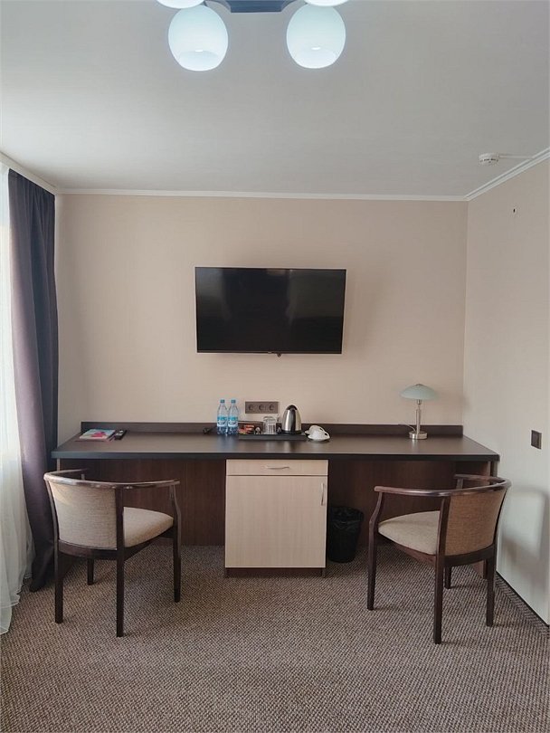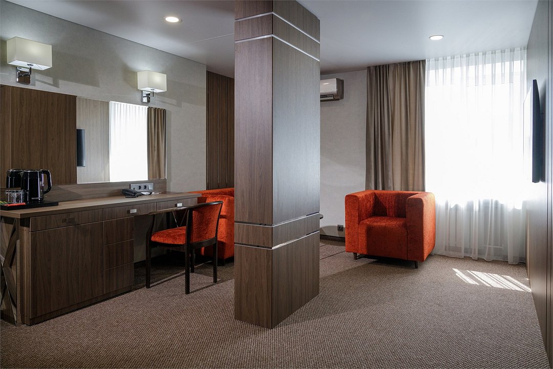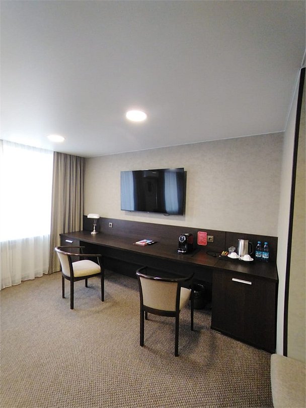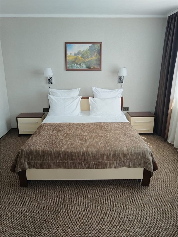 Просторный номер с современным дизайном. Прекрасный вариант для двухместного размещения во время командировки или туристической поездки. В стоимость номера включена бесплатная парковка, wi-fi, вызов такси, побудка и пр.Услуги и удобства