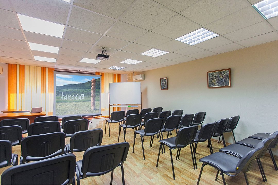 Техническое оснащение: экран, проектор, аудиоколонки, магнитно-маркерная доска, проводной интернет, Wi-Fi, кондиционер, кулер с холодной и горячей водой, нетбук (по запросу), кабель VGA, HDMI, удлинитель.