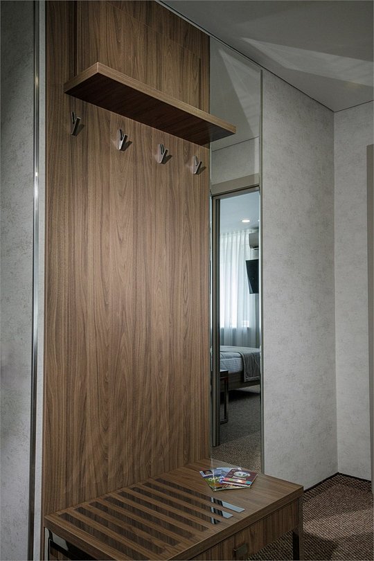 Одноместный номер с современным оригинальным дизайном, эргономичной мебелью, полутораспальной кроватью. Номер отлично подходит для активных путешественников и командировочных. В стоимость номера включена парковка, w-fi, пользование сейфовыми ячейками на ресепшн, вызов такси, побудка и пр.Услуги и удобства