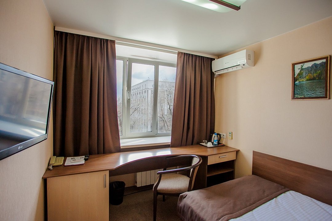 телевизор, кабельное телевидение, Wi-Fi, телефон, холодильник, кондиционер, светильник, настольные лампы, ванна, санузел, косметические средства, односпальная кровать, тумбы, шкаф для одежды, вешалки, письменный стол, зеркало, чайный набор, обслуживание номеров, унитаз, раковина, питьевая вода, отопление, душ, вид на город, кулер на этаже, вид во двор, стаканы, стул, туалетные средства, телевизор с плоским экраном, москитная сетка, шкаф-купеВ гостиничном номере