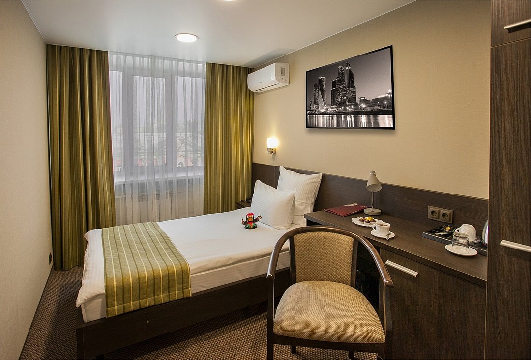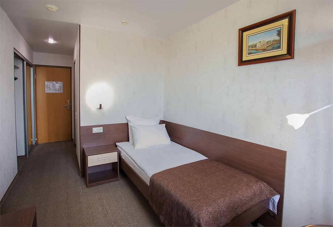 Одноместный номер с современным дизайном, удобной односпальной кроватью. Номер прекрасно подходит для активных путешественников и гостей, приезжающих в командировки. В стоимость номера включена бесплатная парковка, wi-fi, пользование сейфовыми ячейками на ресепшн, вызов такси, побудка и пр.Услуги и удобства