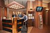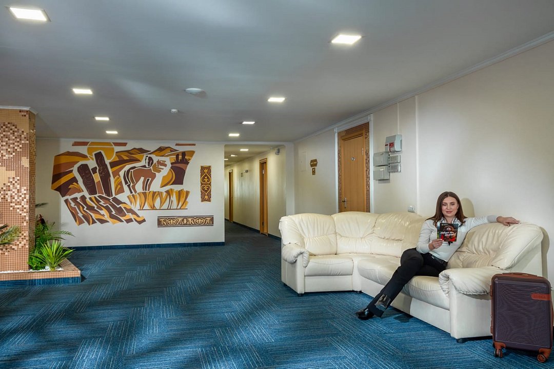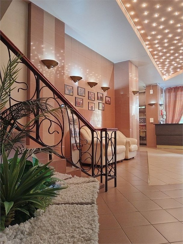Площадь зала 50м². Он находится на втором этаже гостиницы. Есть гардероб, сан.узел, выход на балкон с видом на центральную улицу.