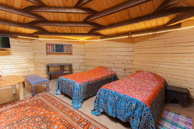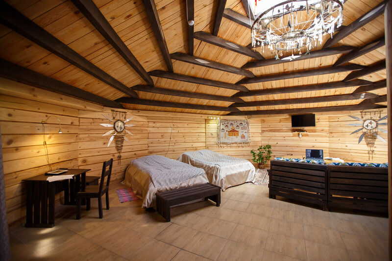Над убранством каждой юрты в Хара Суг работал мастер, люстры под сводами юрт, зеркала при входе, красивые национальные картины, а также обереги при входе в каждую юрту - это кропотливая ручная работа. Выбирайте, где остановитесь: в 2местной юрте «Быстрая лошадь», в 4-местной «Золотой грифон» или в юрте класса люкс «Хакасская сваха». Территорию этнокультурного парка Хара Суг охраняют стилизованные менгиры и другие символы древней хакасской культуры.