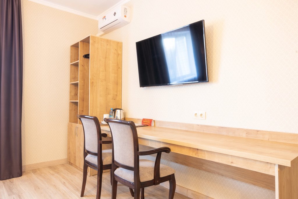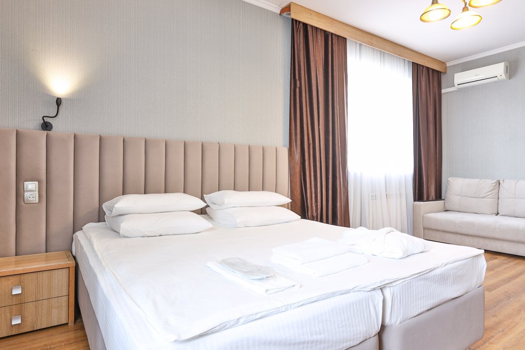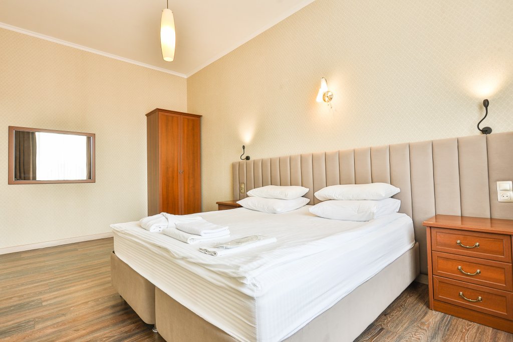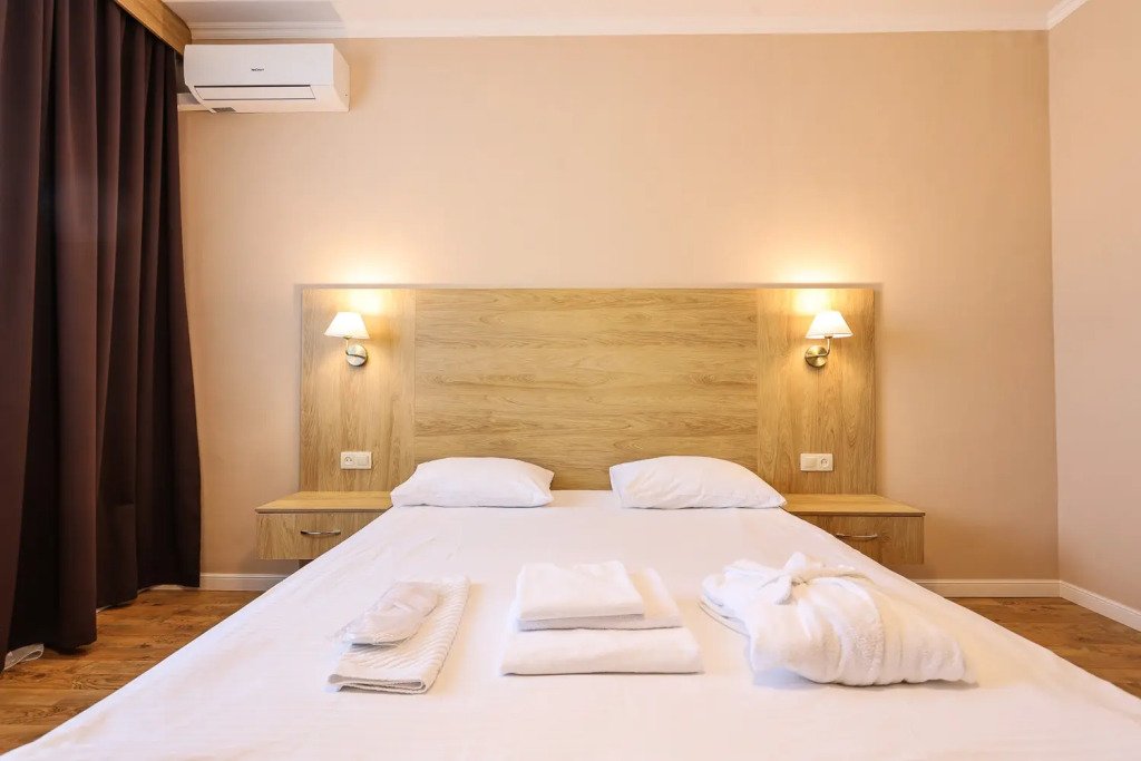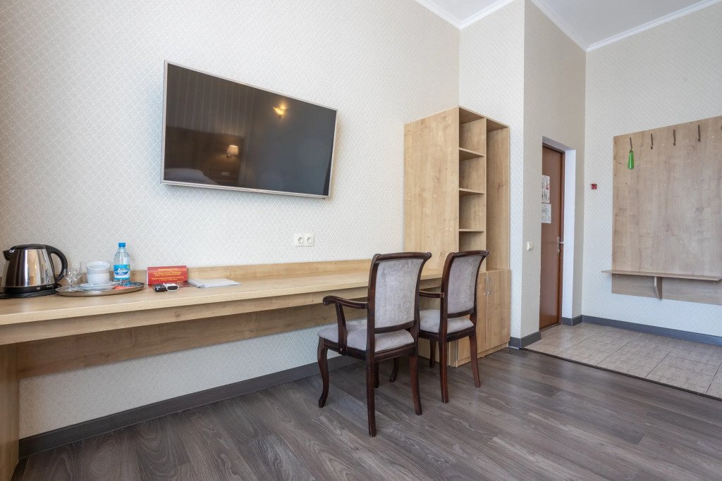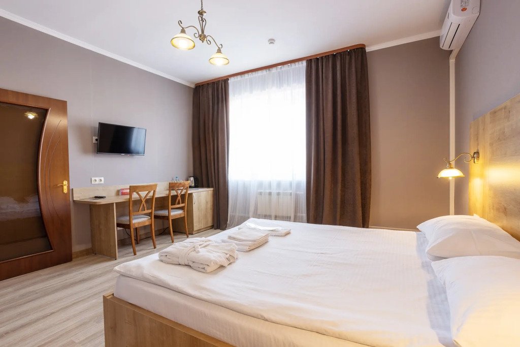 В номере вас будут ждать телевизор, мини-бар и халат. Перечисленные услуги есть не во всех номерах.