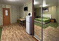 Двуспальная кровать, двухъярусная кровать, шкаф, стол, ТВ, с/у
