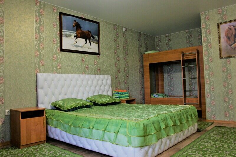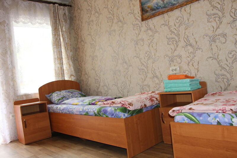 Четыре односпальные кровати, двуспальная кровать, шкаф, стол, с/у.