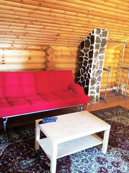 Мебель и стены номера выполнены из дерева, что придает интерьеру некую старину, русскую самобытность.