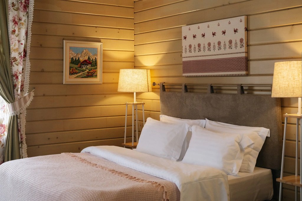 Путешествие с семьейМаксимально комфортный и качественный отдых на природе.Это место отлично подходит для семейного отдыха. Большая красивая территория с очаровательными домами. Есть все современные удобства для действительно насыщенного, приятного и качественного отдыха. На территории парк-отеля располагаются две бани с отапливаемыми купелями, большой и разнообразный детский городок, длинная подвесная эко-тропа с потрясающими видами, кафе с хорошим меню. Приветливый и отзывчивый персонал, отличные повара. Так же стоит отметить, что есть доступ к интернету через Wi-Fi. Очень рекомендую 👍