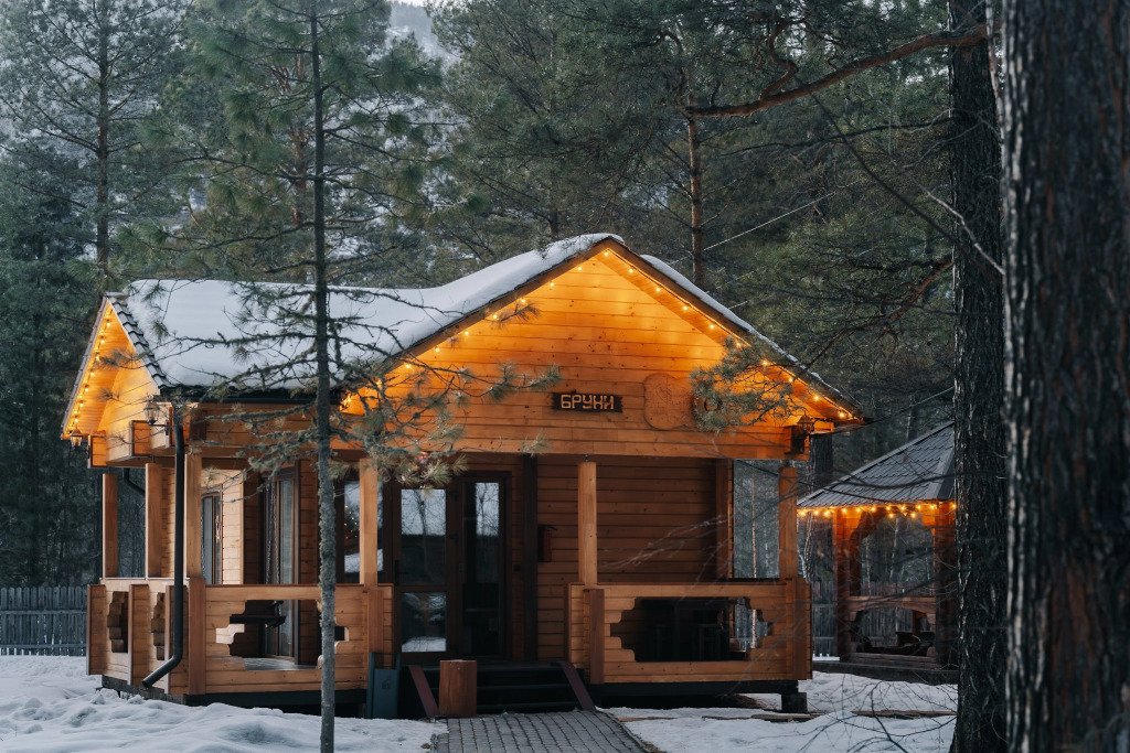 Гости, арендовавшие русскую баню, получают доступ к подогреваемой купели, открывающей великолепные виды на горы и лес. Для создания особой атмосферы предлагается возможность добавить в купель свежую пихту и цитрусовые за дополнительную плату в размере 5000 ₽, что сделает отдых еще более незабываемым.