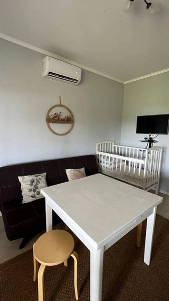 В просторном гостевом доме разместятся до четырех человек, с возможностью дополнительного размещения. Внутри вас ждут две двуспальные и две односпальные кровати, диван и детская кроватка. Гости могут воспользоваться собственной ванной комнатой с душевой кабиной и полностью оборудованной кухней.