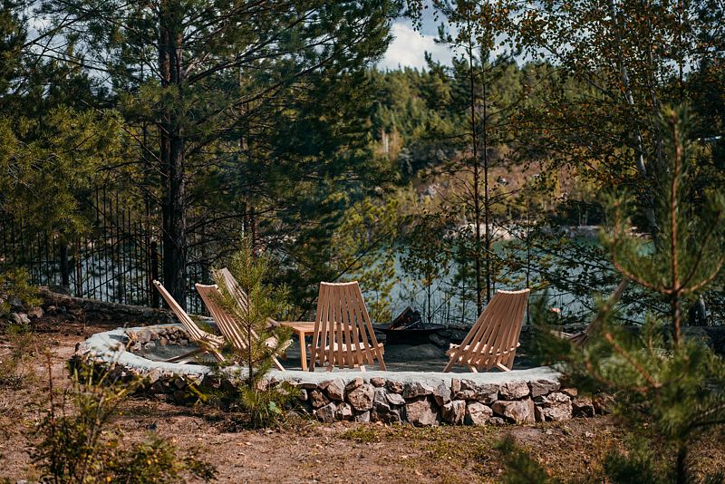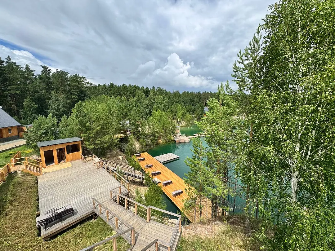 Закрытая территория с шезлонгами прямо у кромки воды. Уютный бар с прохладительными напитками, душ, туалет, мягкие лежаки и атмосферный вид на Мраморное озеро — всё, чтобы провести отдых с комфортом.