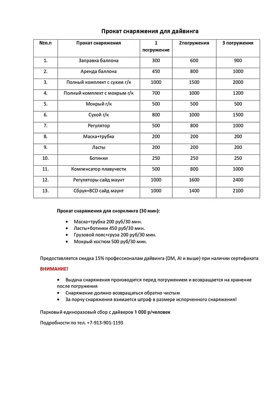 Прокат снаряжения для дайвинга