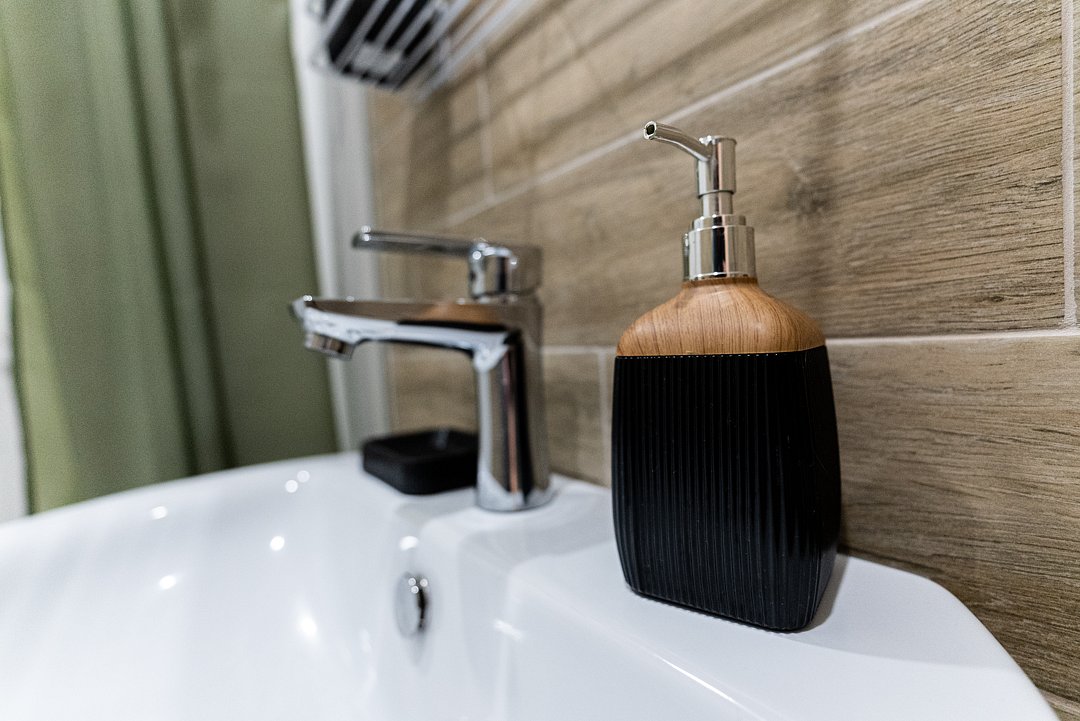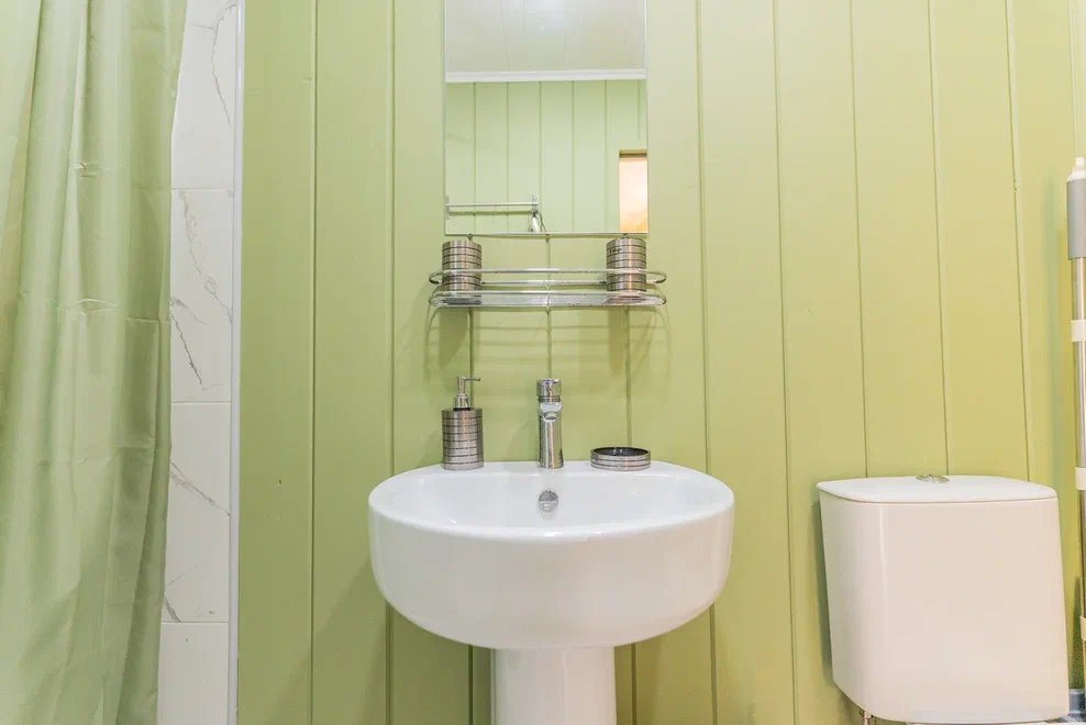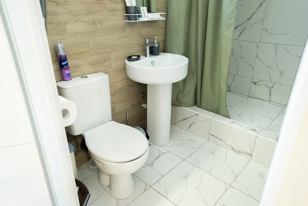 Ванная комната оснащена всем необходимым (душем, санузлом, раковиной с зеркалом, феном, туалетными принадлежностями, наборами полотенец, тапочками). В апартаментах расположена кухня (варочная поверхность на две конфорки, холодильник, раковина и полный комплект посуды).