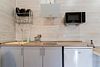 В апартаментах расположена кухня (варочная поверхность на две конфорки, холодильник, раковина и полный комплект посуды). В апартаментах есть все, что нужно для комфортного проживания.