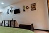 Квартира-студия «Семейная» в Гостевом доме прекрасно подходит для проживания четырех человек. В ней установлена комфортная двуспальная кровать с прикроватной тумбочкой и телевизором. Двухъярусная кровать подходит как для взрослых, так и для детей.