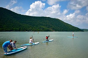 «Abrau Family» предлагает аренду SUP‑бордов как на несколько часов, так и на целый день. Гости смогут насладиться прогулкой по воде, свежим воздухом и яркими впечатлениями — отличный способ разнообразить отдых на берегу.