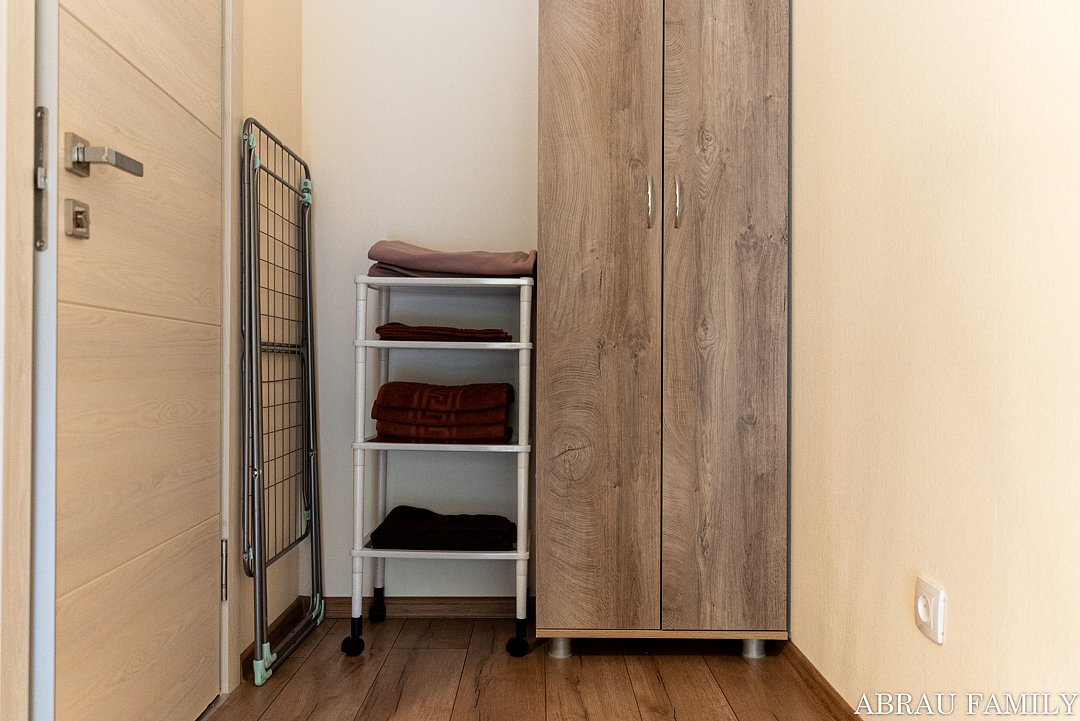 Также в апартаментах есть телевизор, шкаф, гладильная доска и утюг. Ванная комната оснащена всем необходимым (душем, санузлом, раковиной с зеркалом, феном, туалетными принадлежностями, наборами полотенец, тапочками).