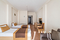 В номере 2-х спальная кровать, рабочий стол, тумбы прикроватные, мини-бар, холодильник, журнальный стол, TV, интерактивное телевидение, кондиционер. Санузел, душ, туалетные принадлежности.