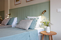 Двуспальная кровать и полутороспальный диванчик в роли дополнительного места.