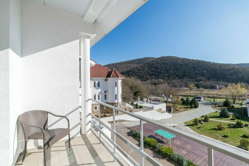 В номере есть сплит-система, мини холодильник, телевизор с плоским экраном, раздельный санузел. Вид на территорию усадьбы, на горы, на бассейн. Есть балкон. Высокие потолки, стаканы.