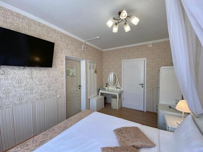 В каждом номере мини-гостиницы есть мебель, кондиционер, телевизор со спутниковым телевидением и собственная ванная комната со всеми необходимыми гигиеническими принадлежностями. На территории мини-гостиницы работает летнее кафе с панорамным видом на море, где можно заказать блюда по меню за отдельную плату.