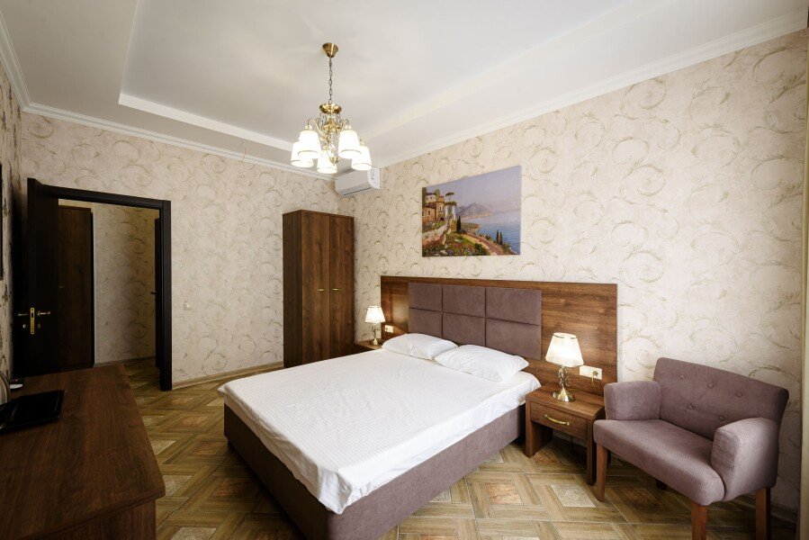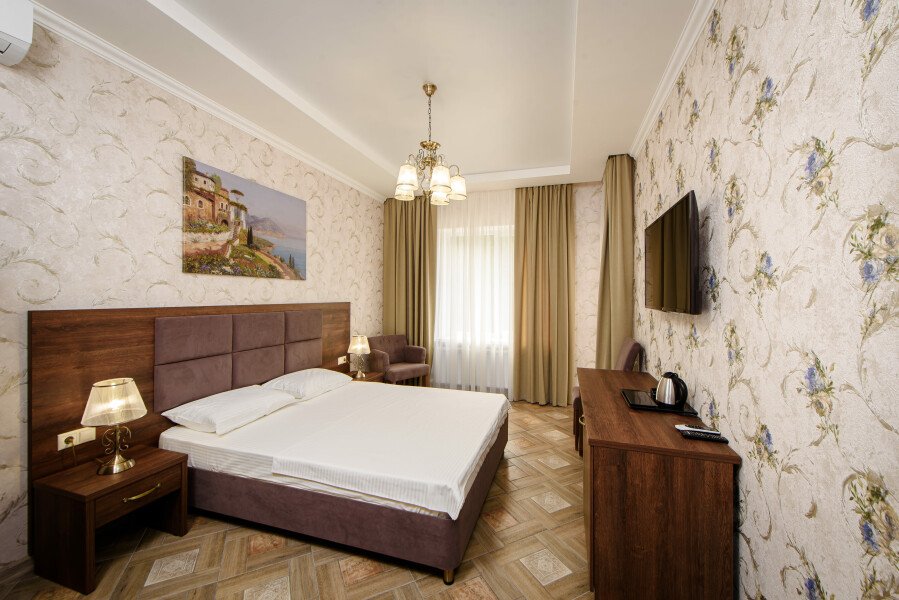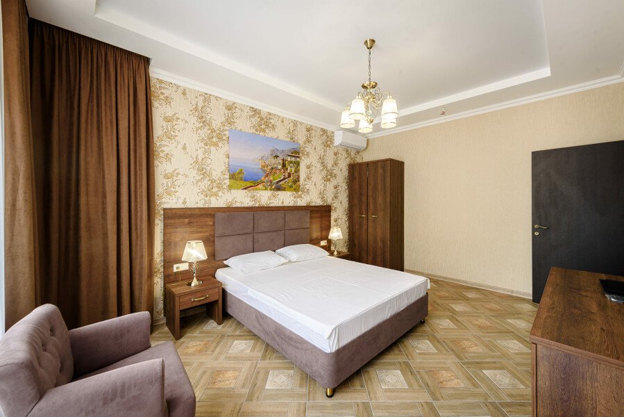 В «Винтаже» вас ждут разнообразные варианты размещения, которые удовлетворят потребности как пар, так и семей. В главном корпусе расположены элегантные номера категорий «Люкс» и «Полулюкс» с отдельными спальнями и балконами. А верхний корпус порадует просторными семейными стандартами с кухнями, идеально подходящими для длительного проживания. Каждый номер продуман до мелочей, чтобы обеспечить максимальный комфорт.