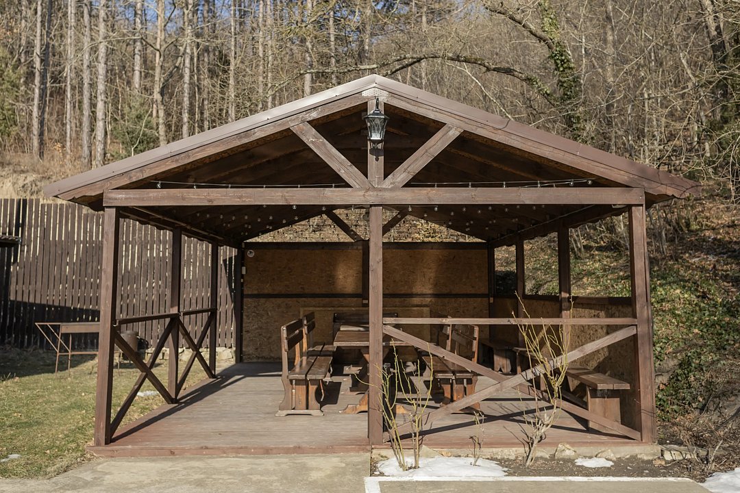 Отель «Винтаж» предоставляет своим гостям уютную беседку в лесу, которая вмещает от восьми до двенадцати человек. Это идеальное место для отдыха на свежем воздухе, где можно наслаждаться природой в компании друзей или семьи.
