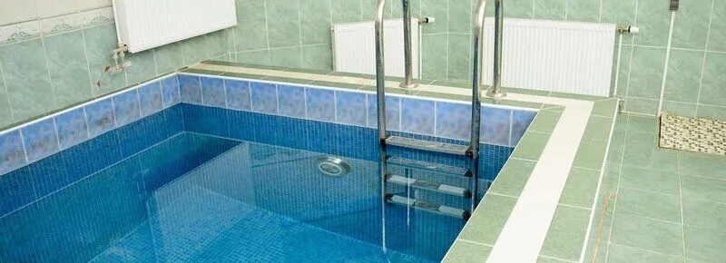 Финской сауной ("сухой" пар). Прохладный бассейн (для окунания) площадью 3,6 кв.м. (с фильтром для очистки воды), душевая.