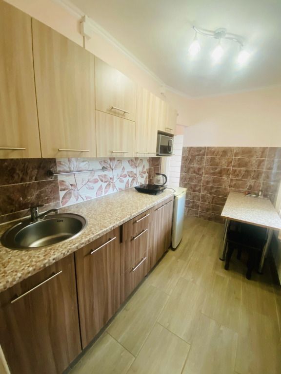 Уютная квартира в окружении леса. Кухня и гостиная. В квартире имеется вся необходимая мебель и посуда для комфортного размещения семьи из 4-х человек.