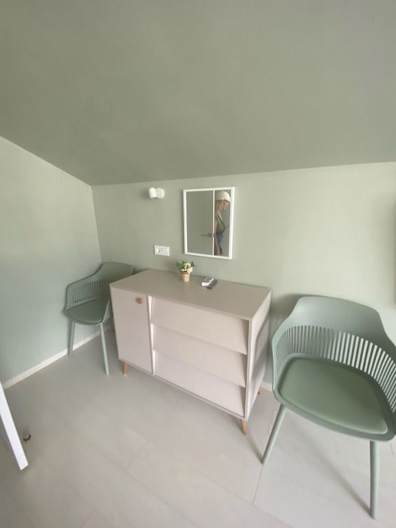 Квартира расположена на территории отеля, за кафе. В доме два номера с отдельным входом на первом и на втором этаже. В каждом номере гостиная, небольшая спальня, кухонная зона (СВЧ-печь, чайник, холодильник, посуда), санузел с душем, фен.