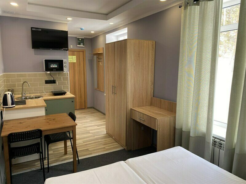 двуспальная кровать, TV, К, Х, сейф, с/у душ, кухонный уголок, свч, эл чайник, эл плитка