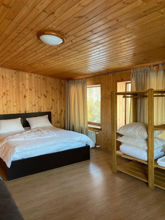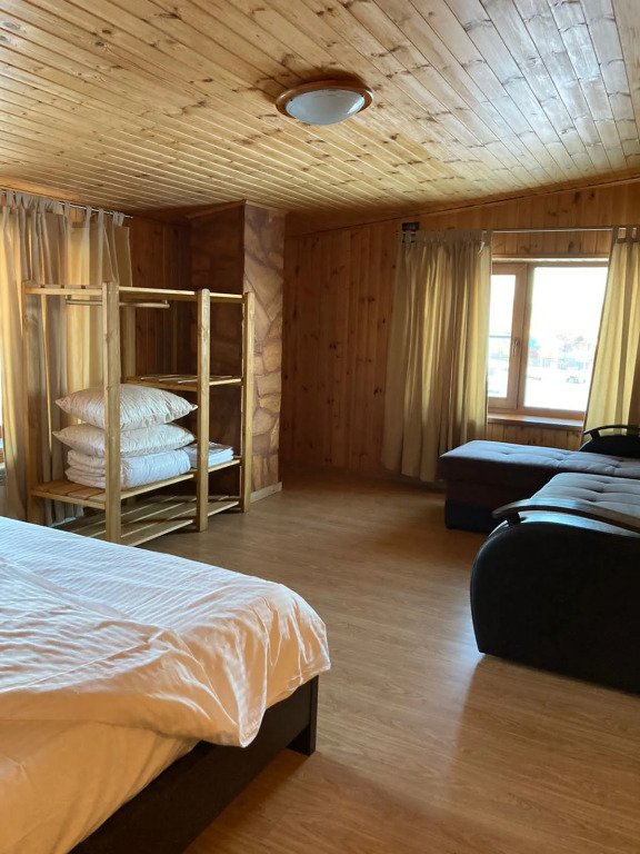 Активный или пассивный отдых — выбор за вами. Коттедж «Коттедж на 17 гостей с красивым видом из окна и террасой» расположен в Абзаково. Этот коттедж находится 1 км от центра города.