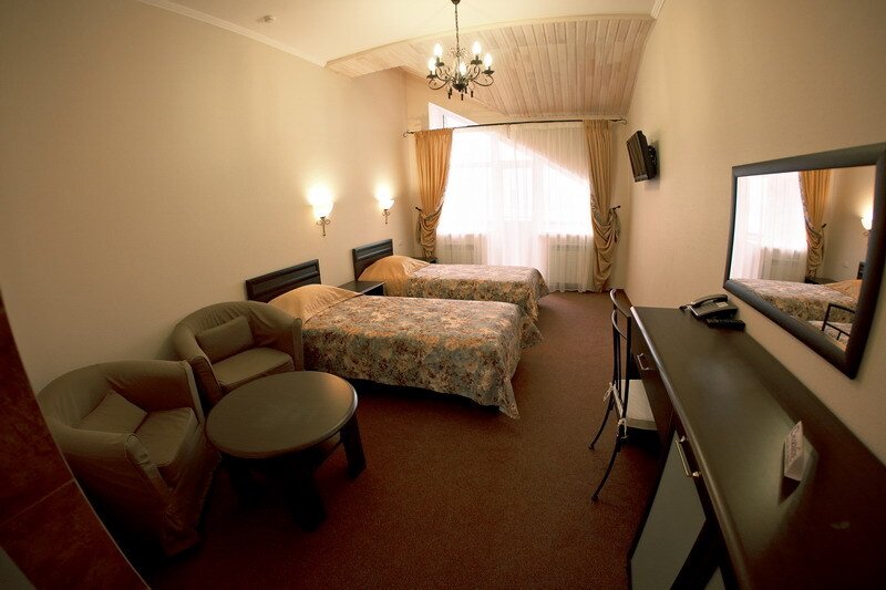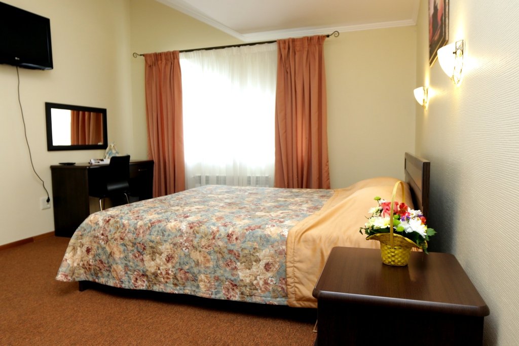 20 кв.м, балкон, вид на озеро. Две 1-сп. или одна 2-спал.кровать, столик, кресла, шкаф, ТВ, Х, сейф, телефон. С/у совмещенный, душ, фен.Wi-Fi интернет.