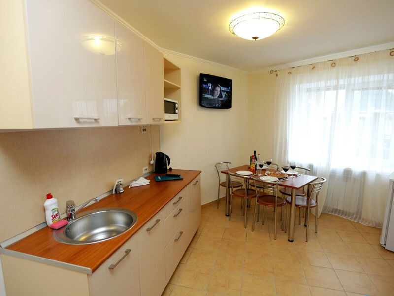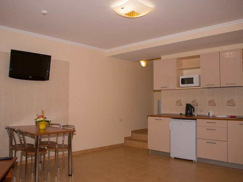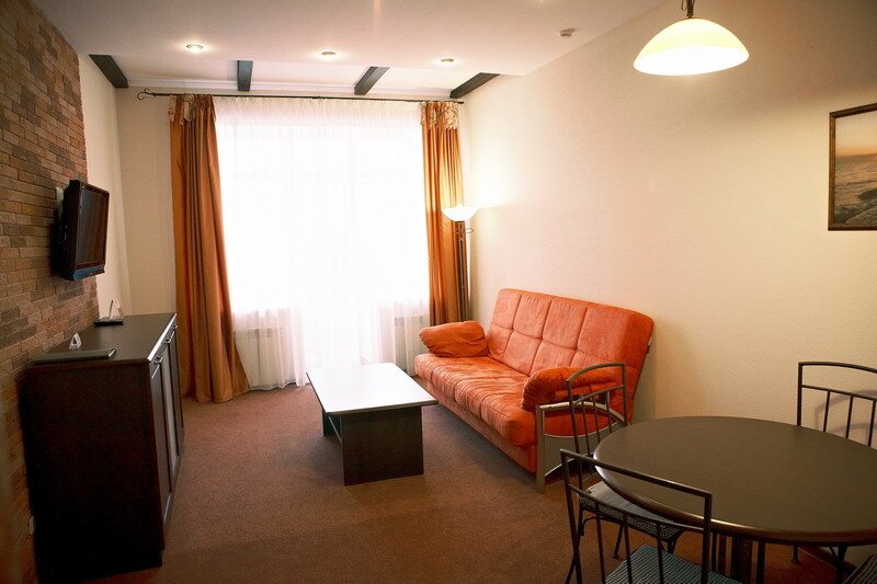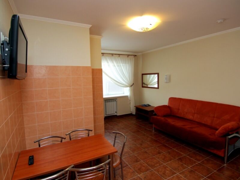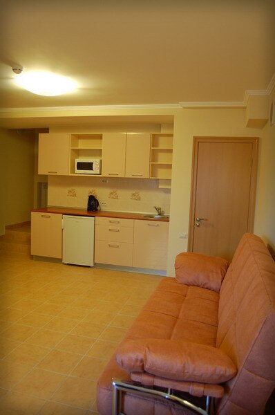46 кв.м., балкон, вид на озеро. Прихожая, спальня, гостиная, обеденная зона. 2-спальная кровать, раскладной диван, два ТВ, сейф, телефон, холодильник. С/у совмещенный, душ, биде,фен. Wi-Fi интернет.
