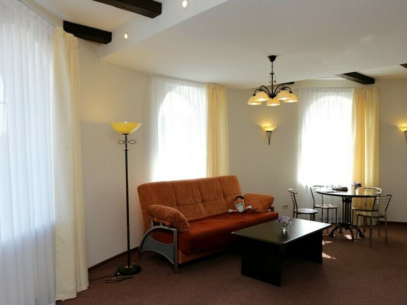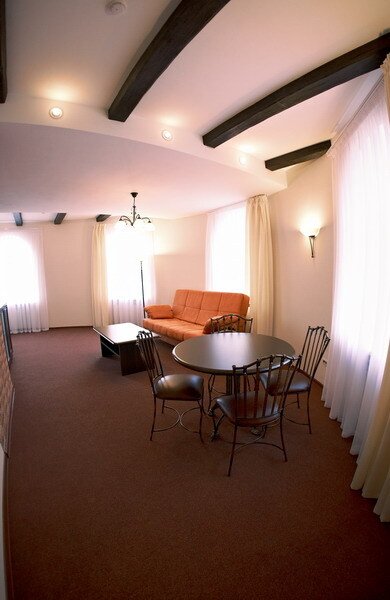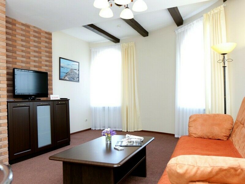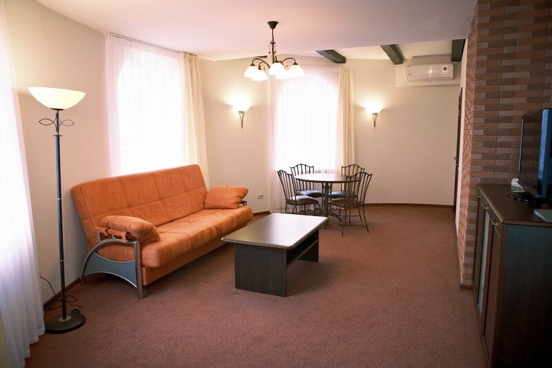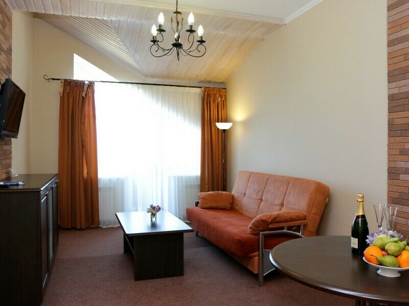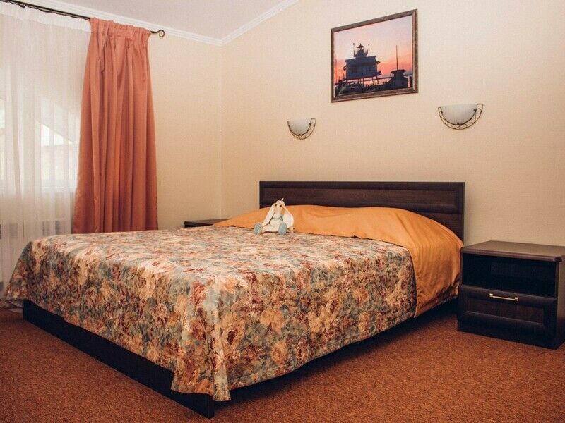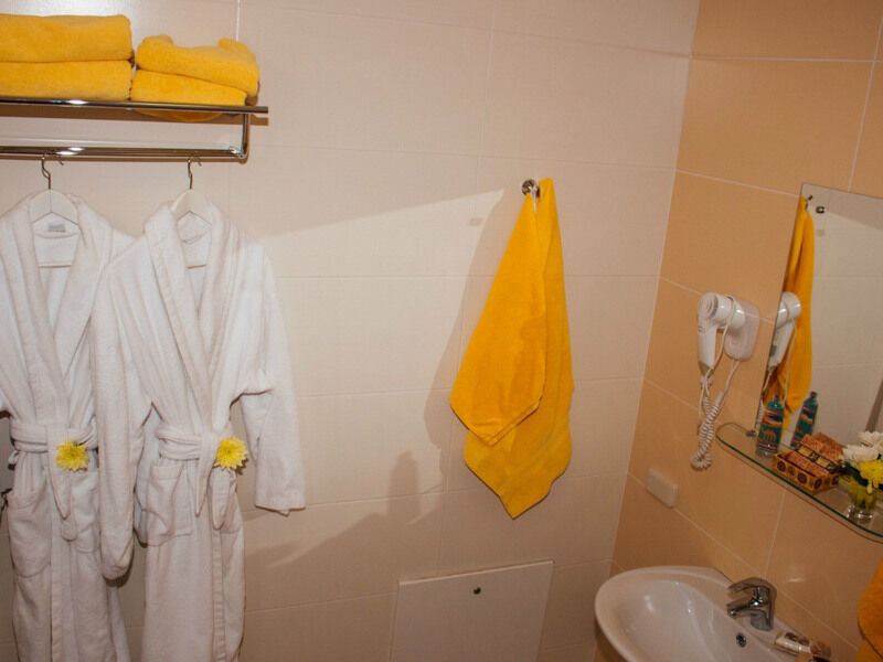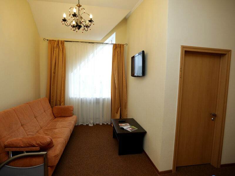50 кв.м, круглый номер, вид на озеро. 2-спальн.кровать, раскладной диван, шкаф, столик, обеденная зона,два ТВ,Х, К, сейф, телефон. С/у совмещенный, душ, биде, фен. Wi-Fi интернет.