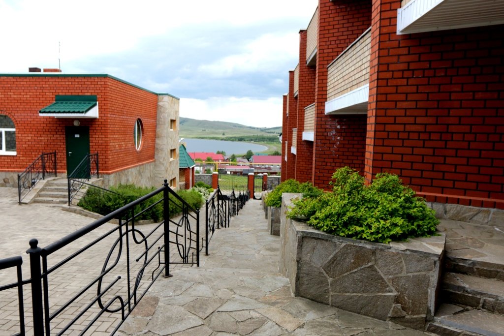 Территория гостиницы является закрытой и отвечает единой стилистике зданий. Продуманный ландшафтный дизайн, мощенные каменной плиткой дорожки, кованые заборчики, скамейки, стройные ели и пышные кустарники создают необходимый уют. Для размещения предусмотрено 3 корпуса: основное 3-этажное здание, в котором расположены администрация и ресторан, и 2 двухэтажных корпуса бунгало. Все корпуса круглогодичного действия, выполнены их кирпича, благоустроены. В номерах максимальное оснащение необходимой техникой (ТВ, холодильник, телефон, фен, сейф), Wi-Fi, на кроватях - ортопедические матрасы, в комнатах - теплые полы (в главном корпусе – в прихожих и санузлах). Часть номеров имеет балконы, из окон открывается живописный вид на озеро. Примечательны просторные номера в бунгало, они являются 2-3-комнатными, многоместными, оборудованы кухонными зонами, гостиными, поэтому идеально подойдут для проживания семей и больших компаний. Кроме этого, в каждом бунгало есть стойка для лыжного снаряжения, что актуально для любителей спорта. Также в гостинице предусмотрена общая комната для хранения лыж, сноубордов и ботинок.