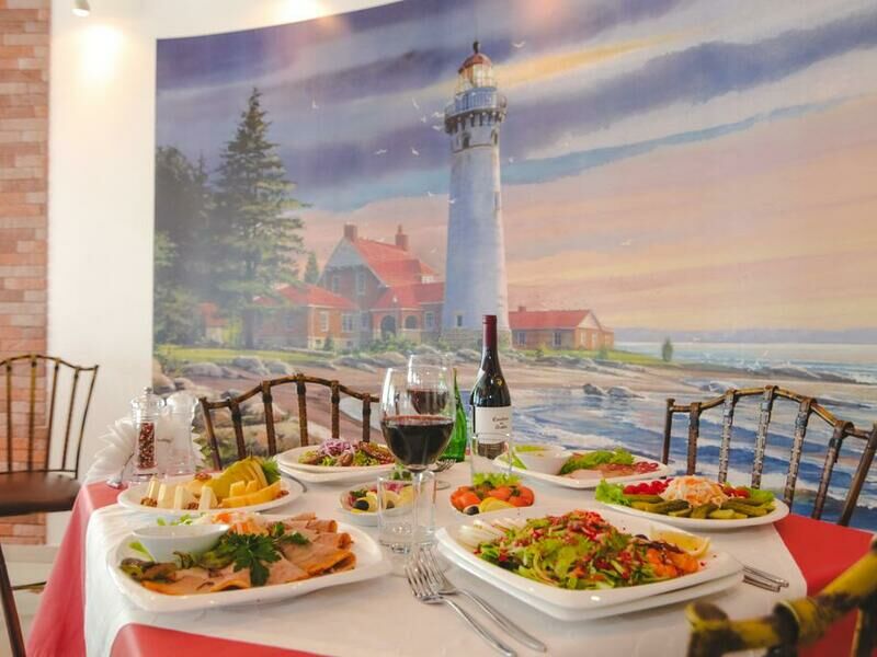Круглосуточный ресторан отеля на 40 посадочных мест считается одним из лучших в округе. Он привлекает оригинальной подачей блюд, разнообразной русской и европейской кухней, богатым выбором десертов и напитков. Каждое утро сервируется комбинированный завтрак. Разработано детское и диетическое меню.