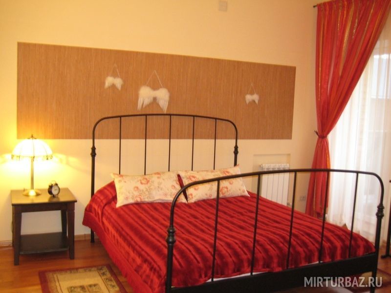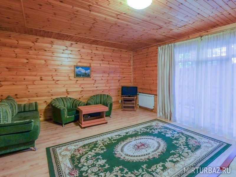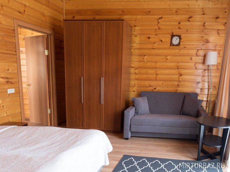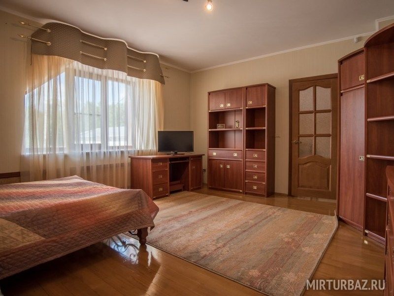 В номере: Двухэтажный коттедж. 1 этаж: просторная гостиная с выходом во дворик, камин, ТВ. Кухня со всем необходимым: микроволновая печь, электрический чайник, холодильник, электроплита, посудомоеч. машина. Спальная комната (двуспальная кровать, шкаф, ТВ). 2 этаж: 3 отдельные спальные комнаты. В 1-ой комнате: двуспал. кровать, диван, шкаф для одежды, туалетный столик, ТВ. В 2-ой комнате: двуспал. кровать, шкаф для одежды, туалетный столик, ТВ, балкон. В 3-ей комнате: большой диван, шкаф для одежды, балкон. В доме 2 санузла (2 душевые кабины), стирал. машина, теплый пол.