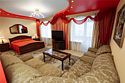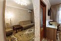 Элегантно оформленный двухкомнатный номер Люкс с балконом. Номер разделен на спальную зону с одной большой кроватью и зону отдыха. В номере есть: ванная комната , диван кровать в гостиной, рабочее место, звуконепроницаемые окна, интернет, телефон.Услуги и удобства
