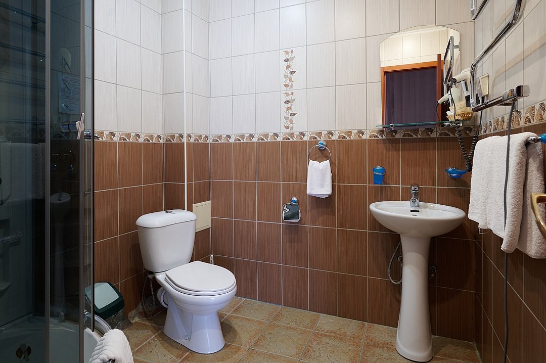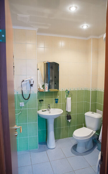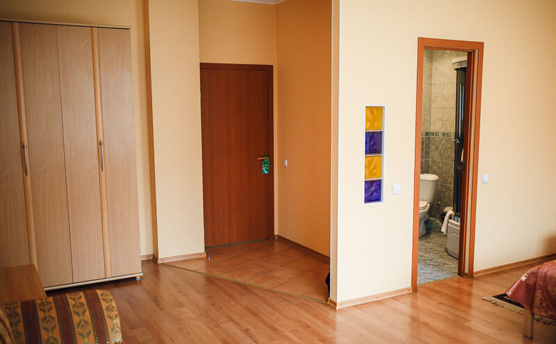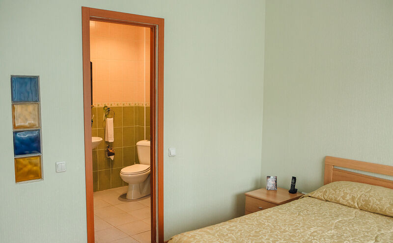 Двухместный номер располагается в блоке из двух номеров. Площадь номера - 12 кв.м. На блок из двух комнат - общий туалет и душевая комната.