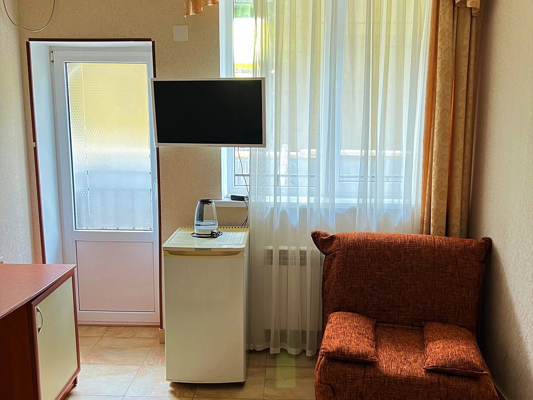 Стандартный номер с балконом. В номере кабельное телевиденье, интернет, кондиционер, холодильник, чайник.В номере