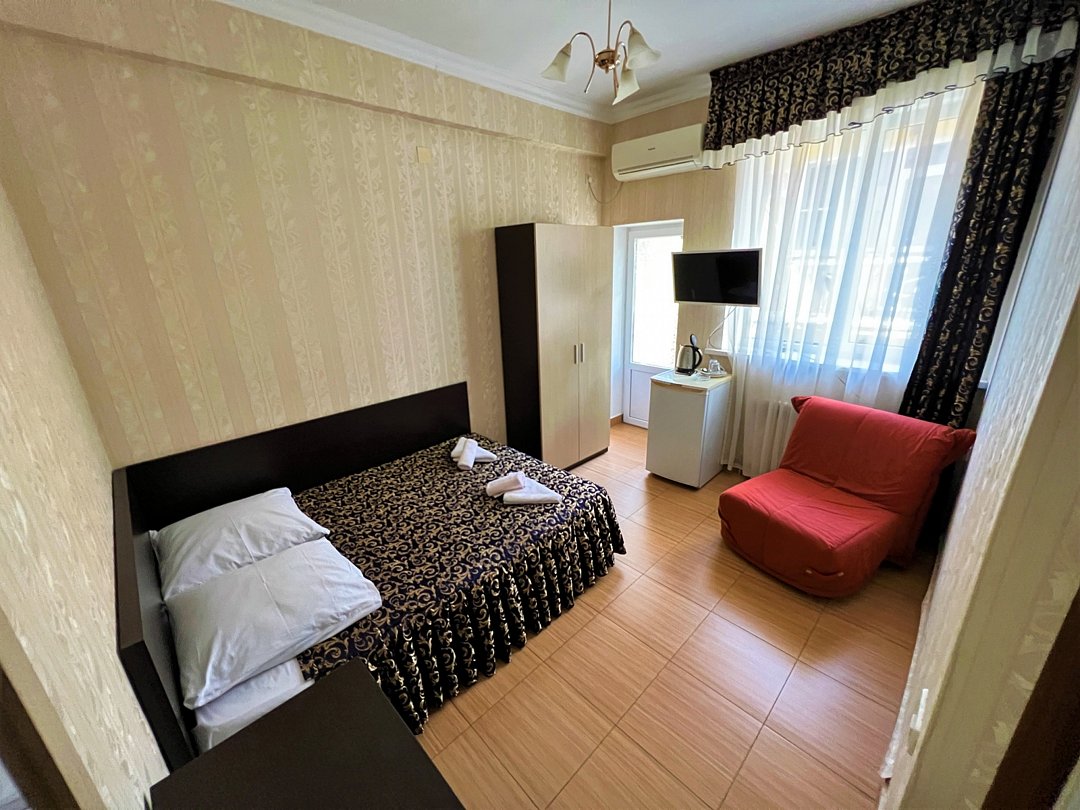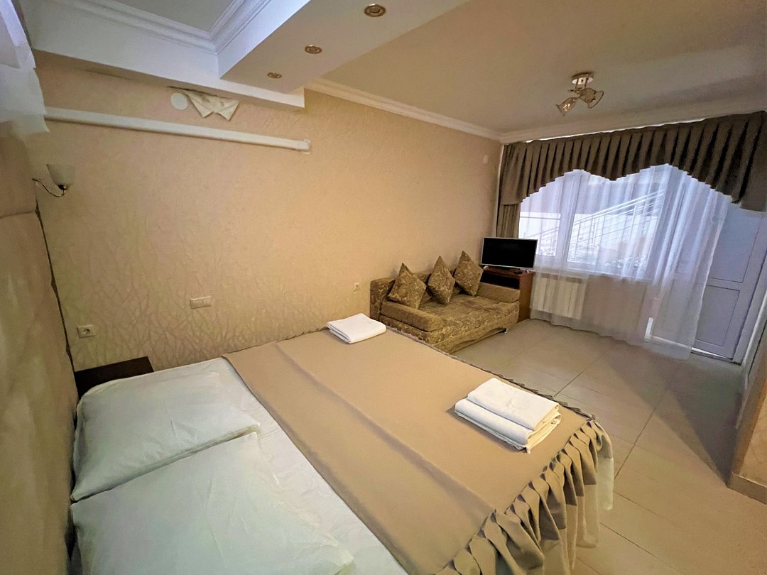 Стандартный двухкомнатный номер с балконам. В номере кабельное телевиденье, интернет, кондиционер, холодильник, чайник.В номере