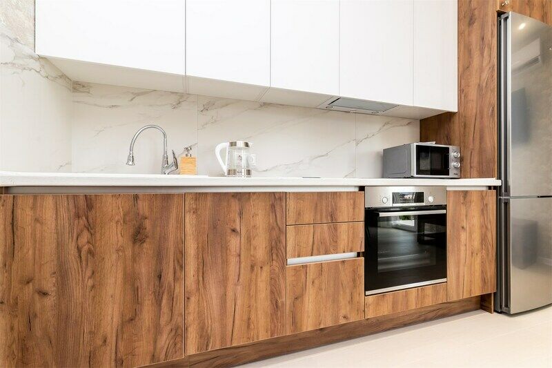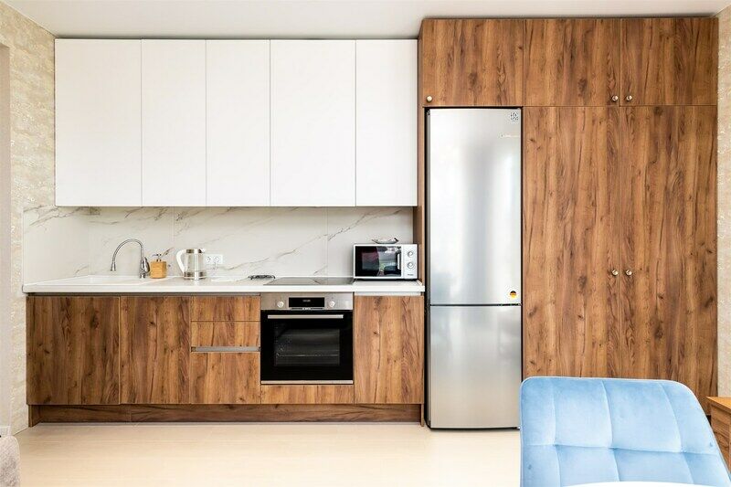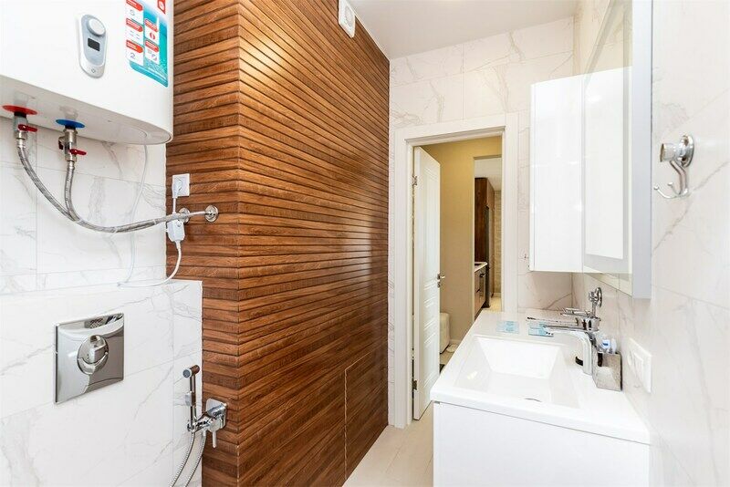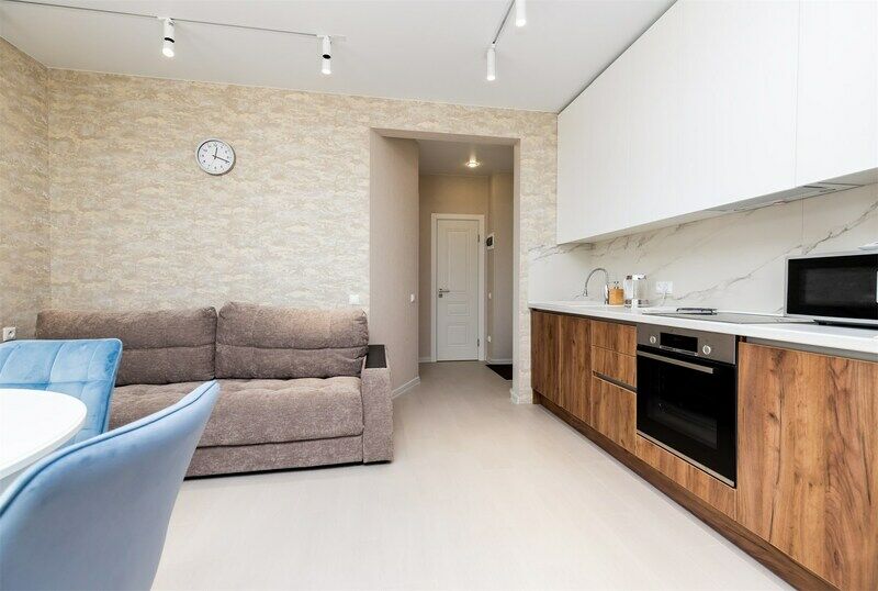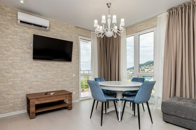 В апартаментах свежий дизайнерский ремонт, имеется вся необходимая мебель: двуспальная кровать с удобным матрасом и гипоаллергенным постельным бельем, двуспальный диван, письменный стол (напротив окна с потрясающей панорамой на горы), платяной шкаф с вешалками для одежды.